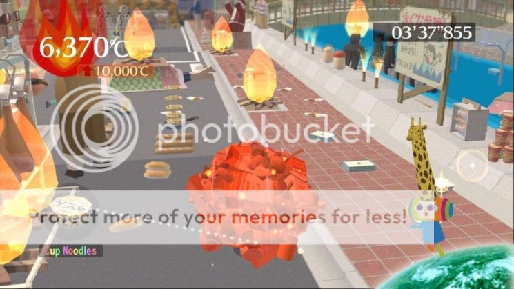 Links oben wo normalerweise die Größenanzeige ist, ist dieses Mal eine Temperaturanzeige die uns vorgibt wie heiß der Katamari zu sein hat. Die meisten Missionen sind mit einem Zeitlimit verbunden, das je nach Größe eurer Kugel variiert.
